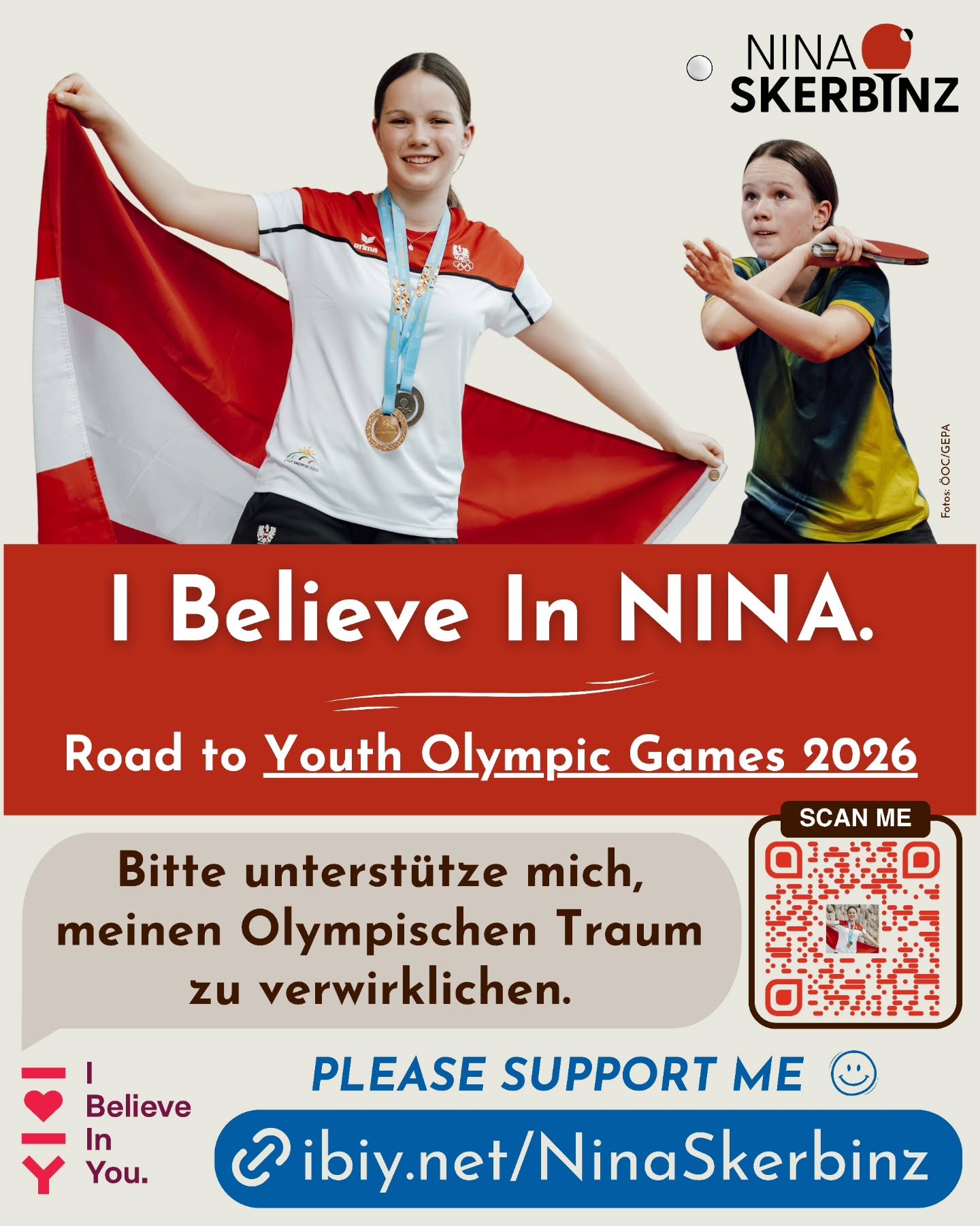 Nina ist Mitglied des österreichischen Nachwuchs-Nationalteams und spielt beim UTTC Stockerau in der 1. Damen-Bundesliga. Trotz ihres jungen Alters kann sie bereits eine beeindruckende Liste an Erfolgen vorweisen. Ihr bislang größter Triumph: die Goldmedaille bei den Europäischen Jugendspielen und der Europameistertitel im U15-Doppel. Hinzu kommen Siege beim WTT Youth Contender, den ETTU Youth Open sowie zahlreiche Titel bei österreichischen Meisterschaften.